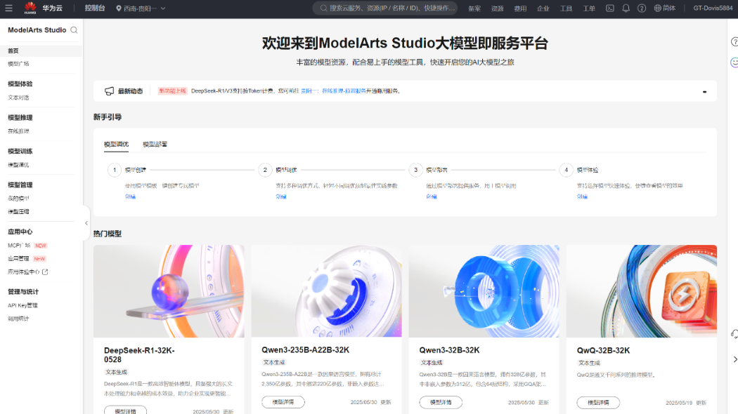 ModelArts Studio提供了一站式AI开发环境,覆盖数据处理、模型训练、推理部署等全生命周期。平台通过直观的UI设计和模块化功能(如数据预处理、模型优化等),降低了开发门槛。Dify平台进一步强化了“一键部署”功能,支持快速构建企业级AI应用,特别适合需要快速上线的场景
