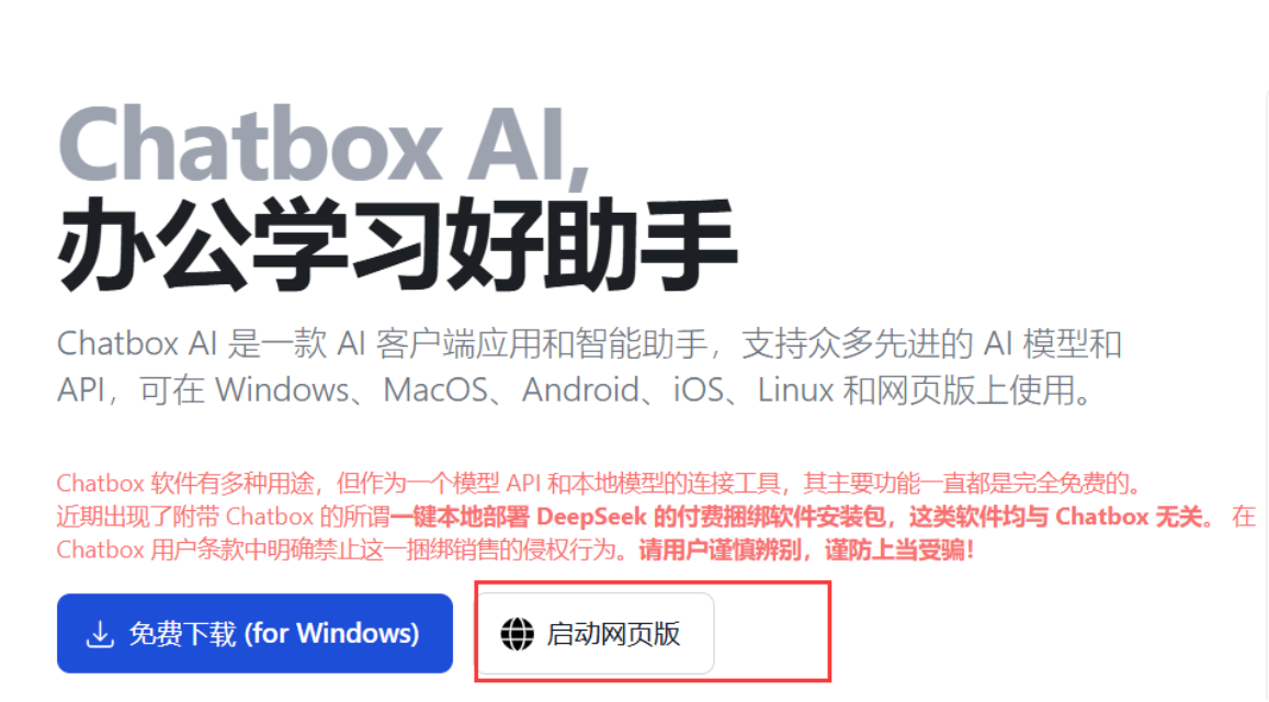 - 访问Chatbox官网(https://chatboxai.app/zh),根据系统选择安装包:
