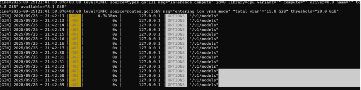 为了让网页版的Chatbox可以访问我们本地部署好的DeepSeek,我们需先配置Ollama的网络绑定与跨域权限,否则无法获取到我们本地的大模型,问题如下图