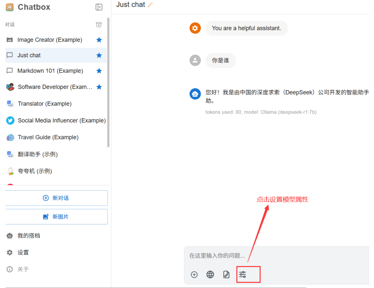 - 基础对话:返回Chatbox主界面,选择“本地DeepSeek-7B”模型,输入问题(如“请解释大模型的注意力机制”),即可看到模型的可视化回答,支持Markdown格式渲染、代码块高亮。