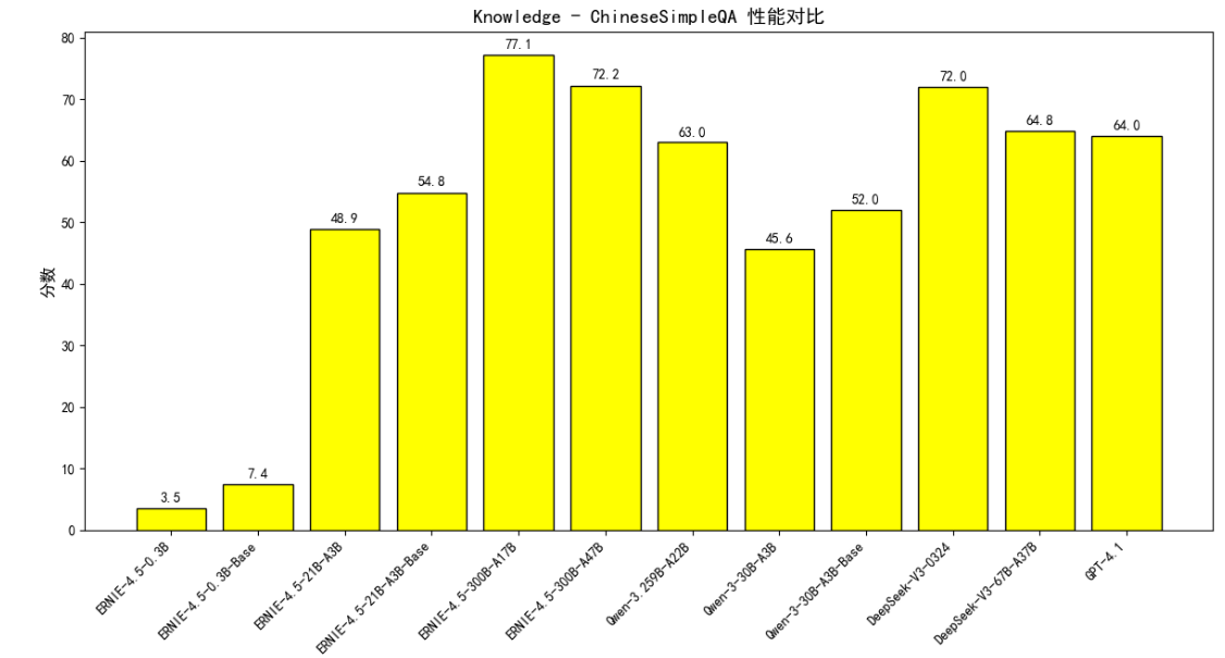 5.1.5.知识问答能力 ERNIE - 4.5 系列模型在对应的知识问答测评里表现较为突出。在与其他模型的横向对比中,展现出了相对良好的知识问答能力,体现出其在知识理解与问答任务方面具备一定优势,能够有效应对这类知识问答场景的挑战 。
