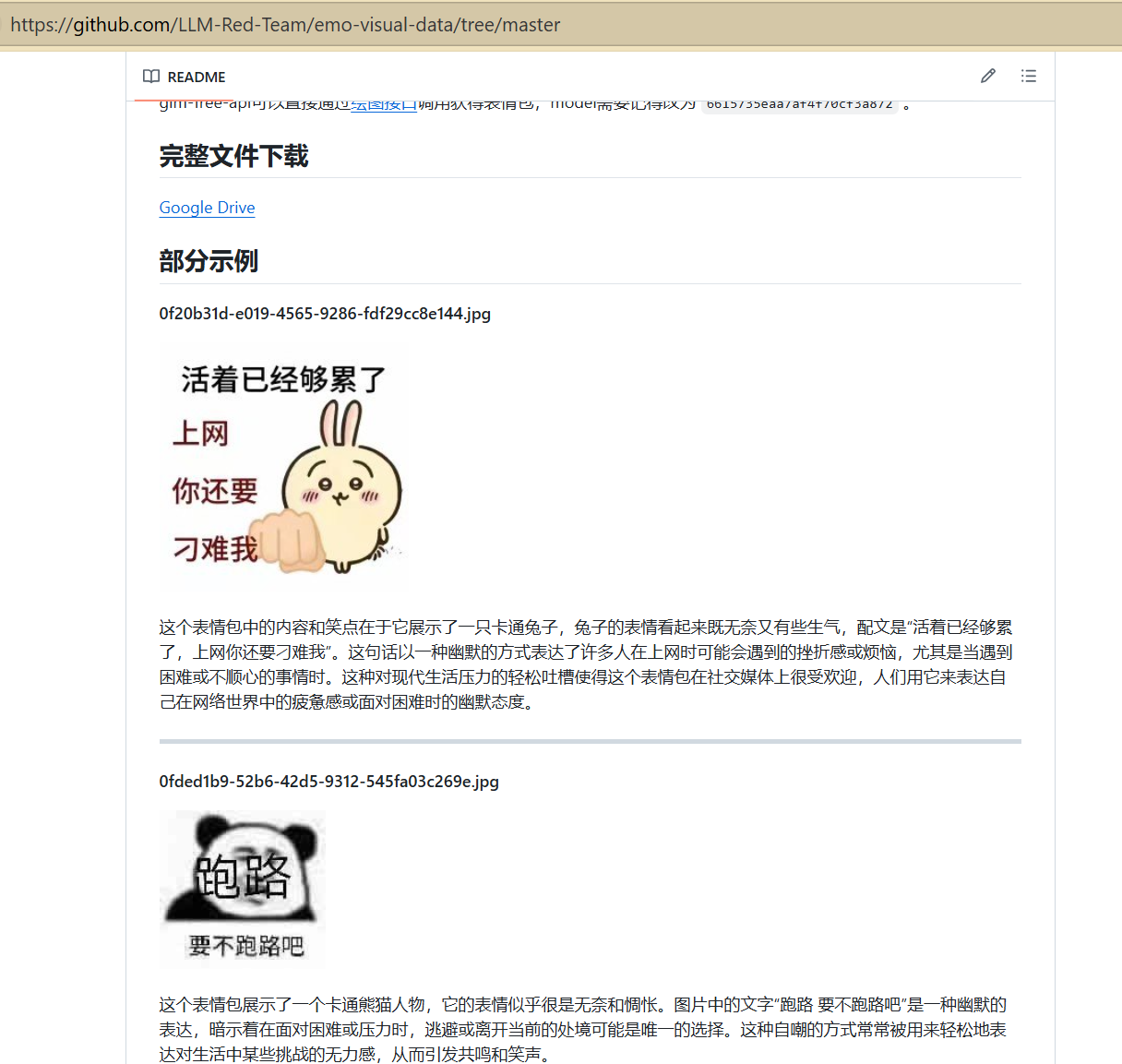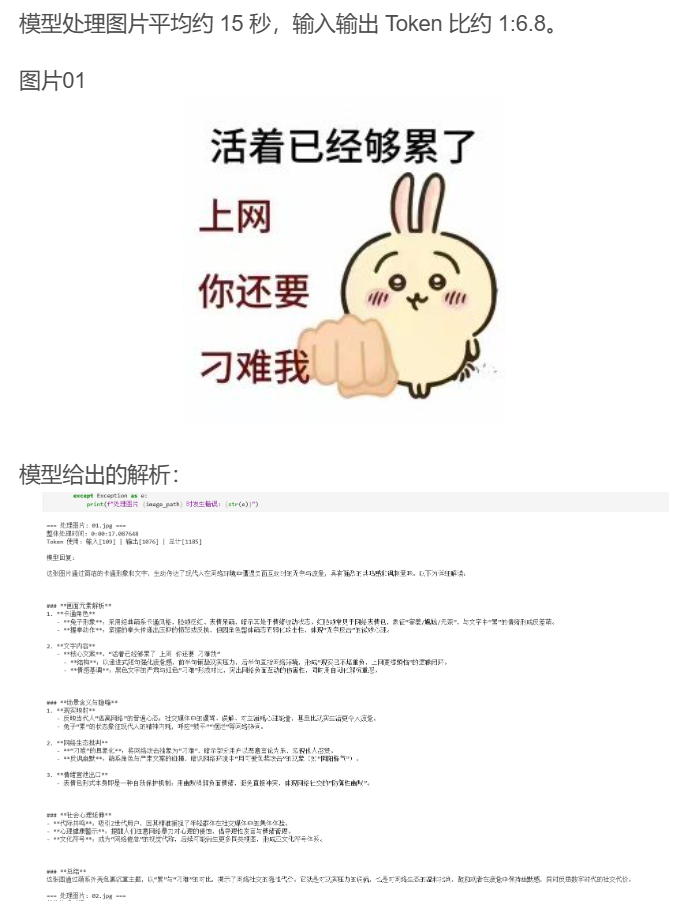 在github上找了一个 表情包视觉标注数据集 ,来测试模型能力。 测试代码(部分):