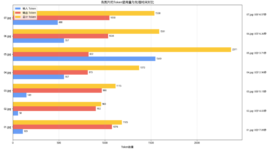各图片的模型响应时间和 Token 使用量