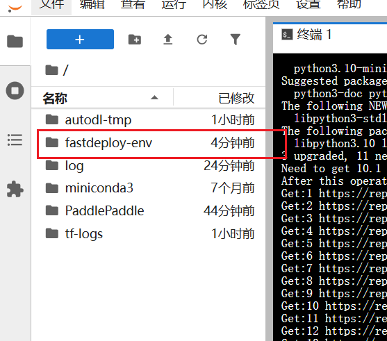 创建成功,在旁边文件目录中会有 fastdeploy-env 文件 4.安装 paddlepaddle-gpu:3.1.0版本