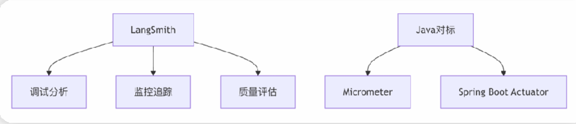 LangSmith | 调试+监控:看AI应用哪里出问题、性能如何 | Prometheus + Grafana | 发现“天气API调用失败”,或“LLM回答耗时太长” | 生产环境监控、效果评估 |