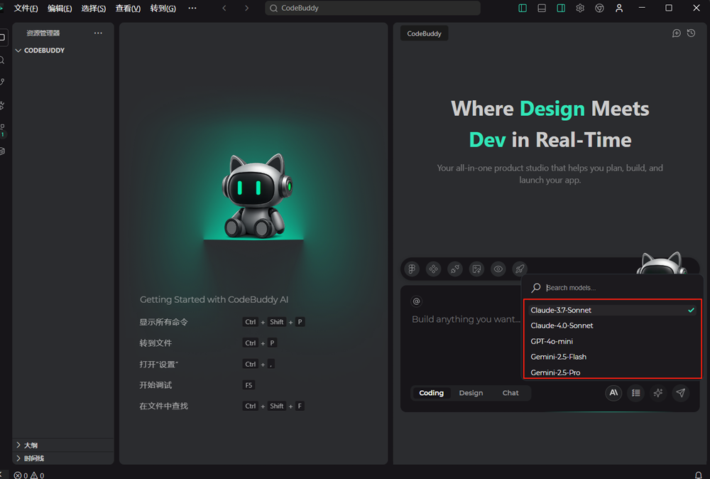 CodeBuddy 内置 Claude 3.7、GPT-4、Gemini 2.5 Pro 等顶级大模型,将 “技术实现” 转化为 “自然语言对话”。支持文本、图片上传,AI 能自动生成结构化代码,并兼容主流技术规范。