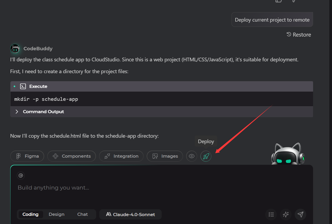 原本是本地文件,想要被他人访问一般需要托管到平台上,对于小白来说操作十分繁琐但是codebuddy给我们提供了一键部署deploy功能,还能自动纠错,全自动化实现非常方便。