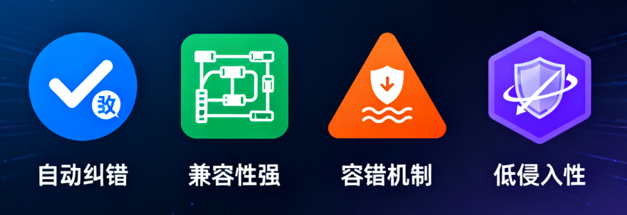 - 自动纠错:智能识别并修复不规范的输出格式,如单引号JSON、字段缺失、语法错误等