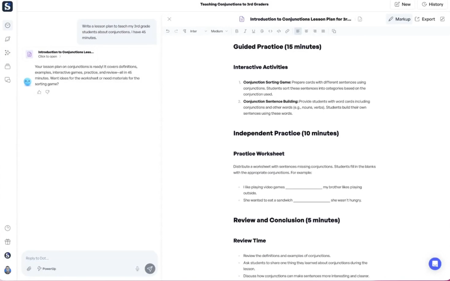 教师端的对话助手Dot,堪称“智能备课管家”。输入“为三个不同水平的学生创建差异化阅读活动”,数秒内即可生成包含热身环节、实操任务和_exit ticket_的完整课程框架,配合图像生成技术可定制光合作用示意图、历史地图等视觉素材,文本转语音功能还能提供60余种语言的朗读支持。而学生端的Sidekick辅导系统,则基于GPT-4.1的深度推理能力,实现“因材施教”的个性化引导——它不会直接给出答案,而是通过多步骤提问拆解数学难题,或通过实时翻译帮助非母语学生融入课堂,那位只会说达里语的学生,正是借助这一功能快速实现了小组协作与文化融入。