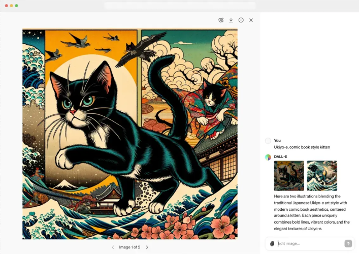 •迭代方便:和 ChatGPT 集成,能通过聊天反复修改图片(比如 “把背景换成蓝色,文字加大”)。