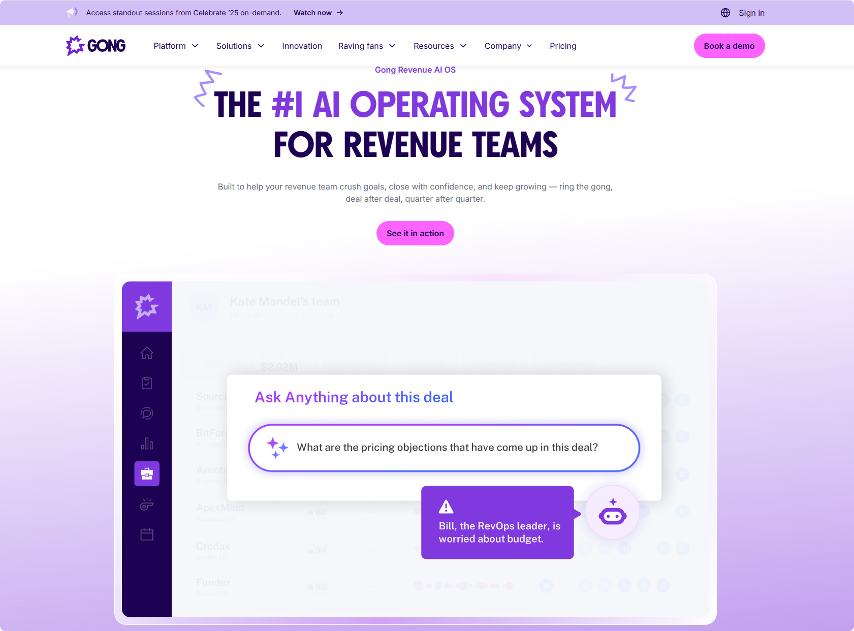 现在,AI正成为销售团队的“可靠罗盘”。根据麦肯锡公司的调研,采用AI驱动销售的机构在销售额增长方面获得了高达10%至20%的提升。 更具价值的是,Gong.io等AI会话智能工具能在合规授权前提下,记录并分析所有销售与客户的通话内容。根据Gong.io官方发布的《2024 Revenue Intelligence Benchmark Report》,使用其平台进行通话分析的团队,交易胜率平均高出28%。 通过大数据比对,AI 可提炼出成功订单中高频出现的沟通关键词、产品介绍逻辑和谈判技巧,反向指导销售优化沟通策略。