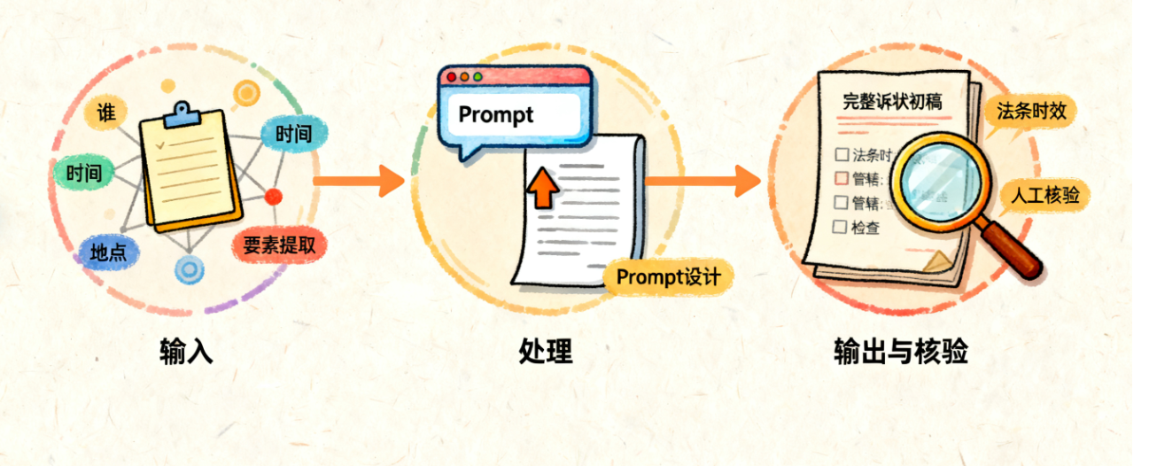 结合技术实现路径与司法实践经验,普通人使用大模型生成起诉状可遵循"要素提取-Prompt设计-人工核验"三步法,兼顾效率与合规性。