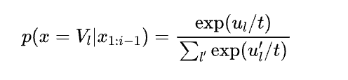 通过温度(temperature)来调整概率分布。它控制着生成文本的随机性,进而控制文本的多样性。经过温度调整后的概率分布可以表示为: