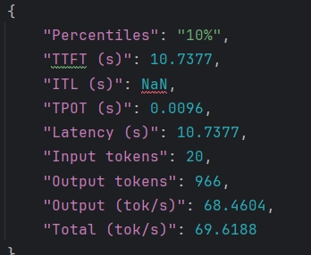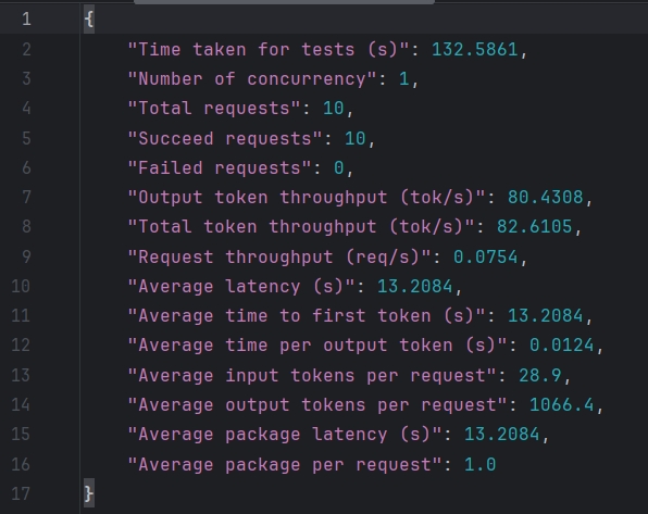 6.生成的结果会保存在项目目录中名为outputs的目录下,压力测试结果最重要的两个文件是benchmark_summary.json 和benchmark_percentile.json。