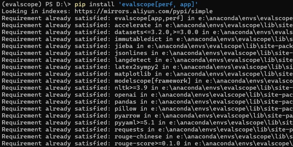 本分享将会展示Evalscope压力测试和数据集评测可视化的案例, 所以我这里使用如下命令安装: