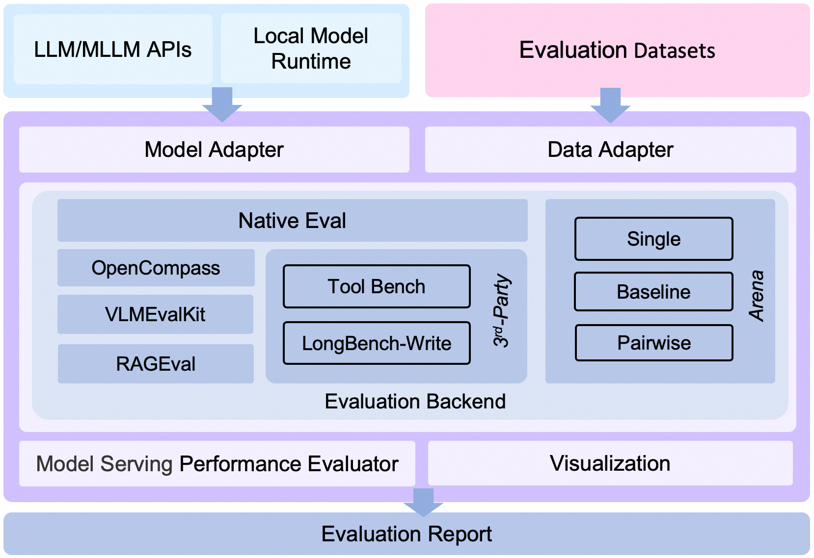 - Evaluation Report: 最终生成的评测报告,总结模型的性能表现,报告可以用于决策和进一步的模型优化。