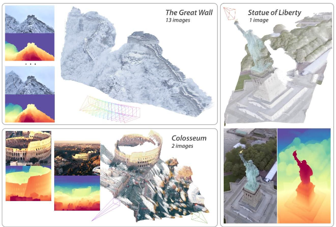 DA3的多功能性超越了基本的几何估计,延伸到实际应用中: