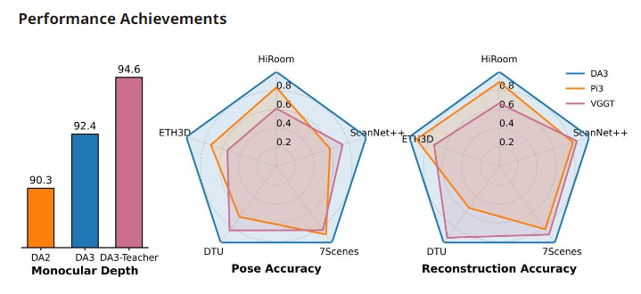 DA3通过创新的师生训练方法,克服了真实世界3D数据噪声多、不完整的限制: