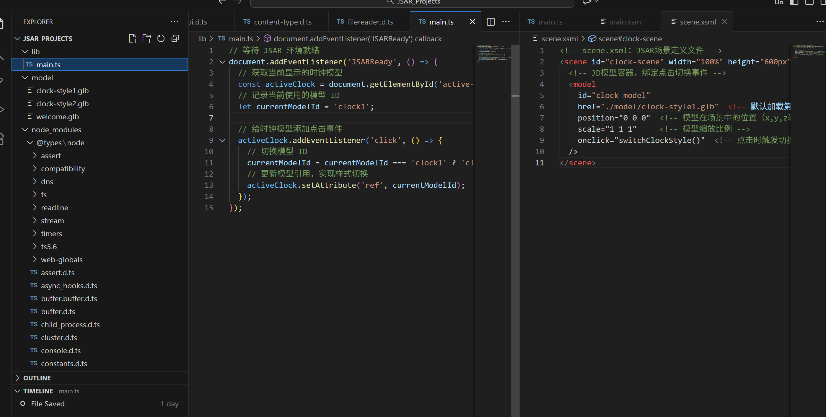 其中,main.xsml 是空间场景的“入口”,类似前端项目的 index.html,示例代码如下:
