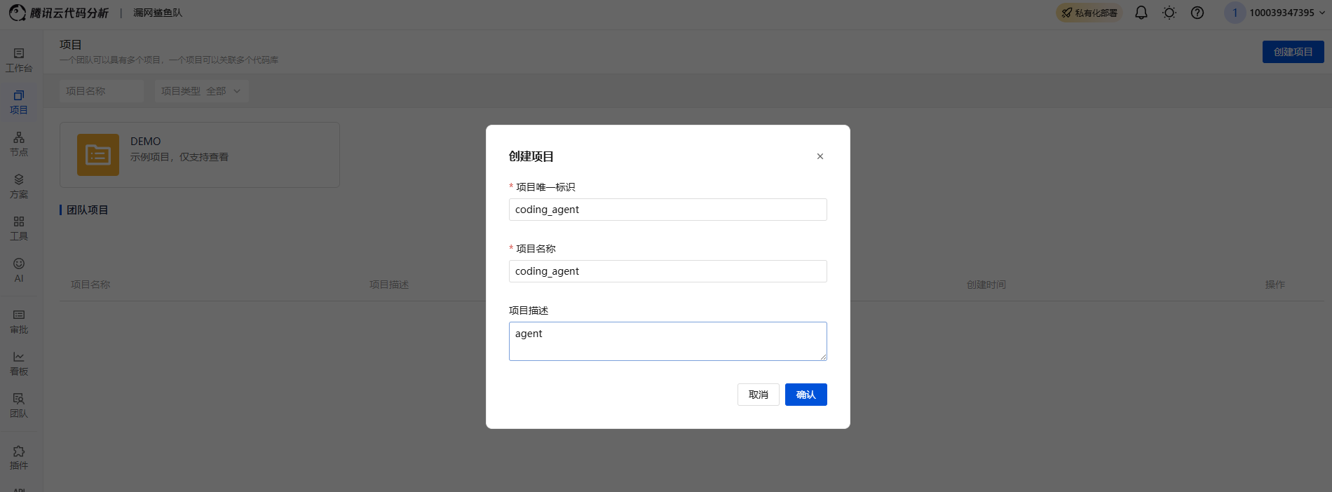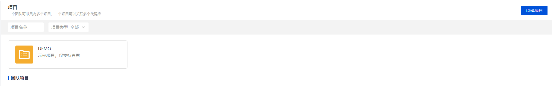 - 登录后主界面如下所示,并创建团队