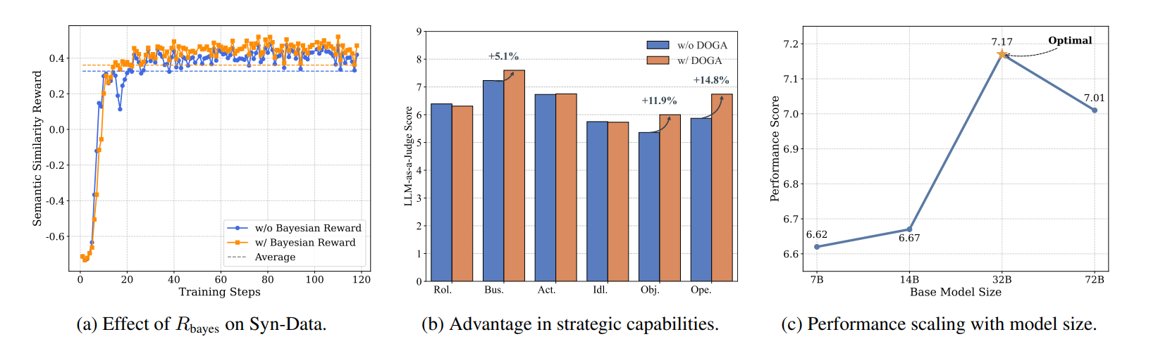 不是模型越大效果越好,实验发现32B参数的模型性能最佳,达到7.17分的峰值。从7B扩展到14B提升有限,而72B模型反而出现性能下降,这为企业部署提供了性价比参考,无需追求超大模型即可获得优质效果。