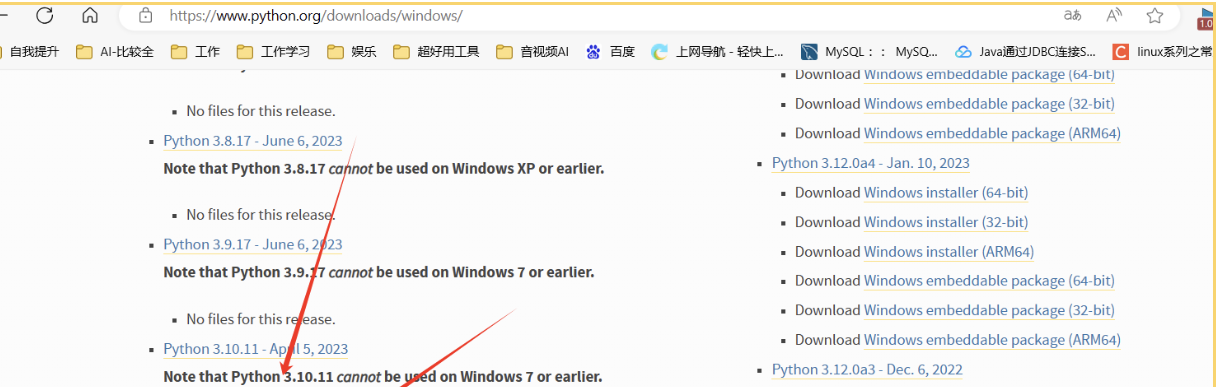 看完前面的介绍之后,开始实验操作之前,需要准备好一些开发环境,不然可能会像我一样,Python软件的版本和实验环境版本不一致,防止环境搭建出问题,还是先下载好实验推荐的版本Python 3.10.11版本的,官网下载就行(下面会写下载安装详细流程)。