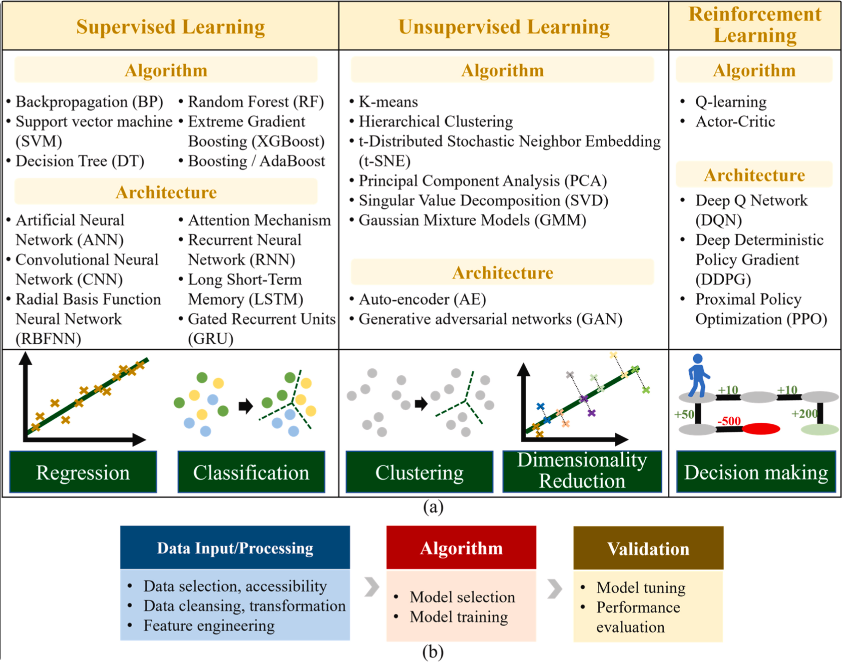 如果说神经网络是AI模型的“明星球员”,那么机器学习(ML) 就是整个球队的战术基础。机器学习包含三大核心分支:监督学习、无监督学习和强化学习。