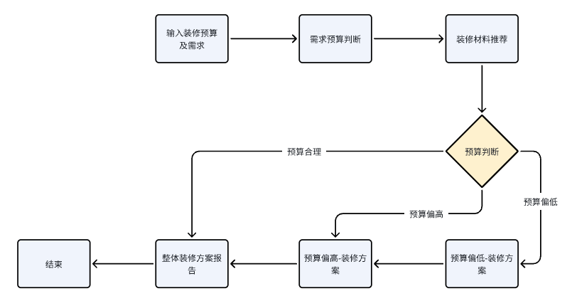 - 预算风险:每平米预算<800为"预算偏低",>3000为"预算可能浪费"