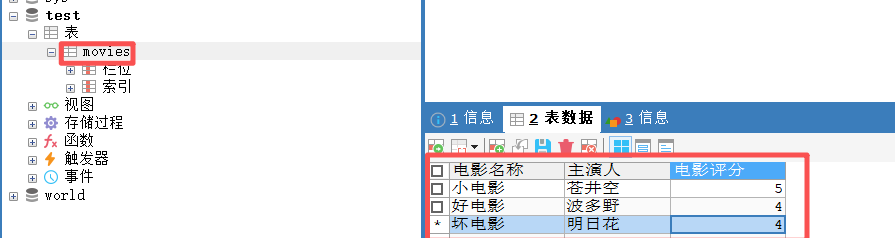 进一步测试,我们在 test数据库中创建 movies表,并加入如下数据, 在 LangGraph Studio页面输入指令“请查询test数据库中movies表的所有项目并列出”,输出结果符合预期。