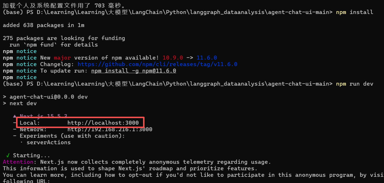 npm run dev // 运行agent-chat-ui项目