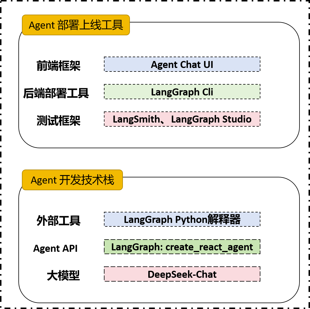项目完成编写后我们使用 LangGraph cli一键本地部署,同时使用 LangSmith和 LangGraph Studio进行可视化调试。前端框架我们使用 Agent Chat UI快速对接服务并构建应用。