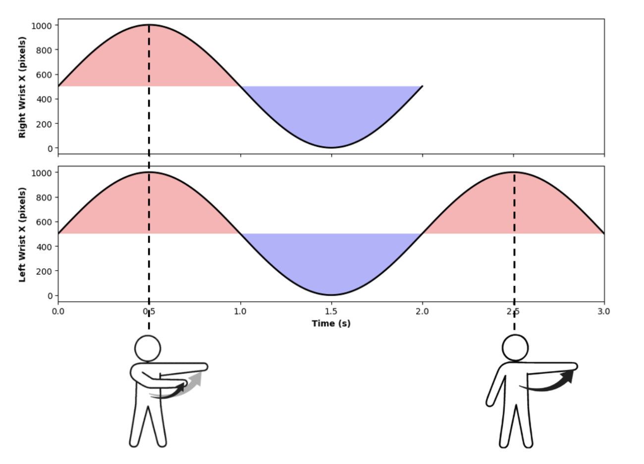 手腕跟踪曲线:X轴运动峰值对应横向强调手势,Y轴对应纵向情绪表达