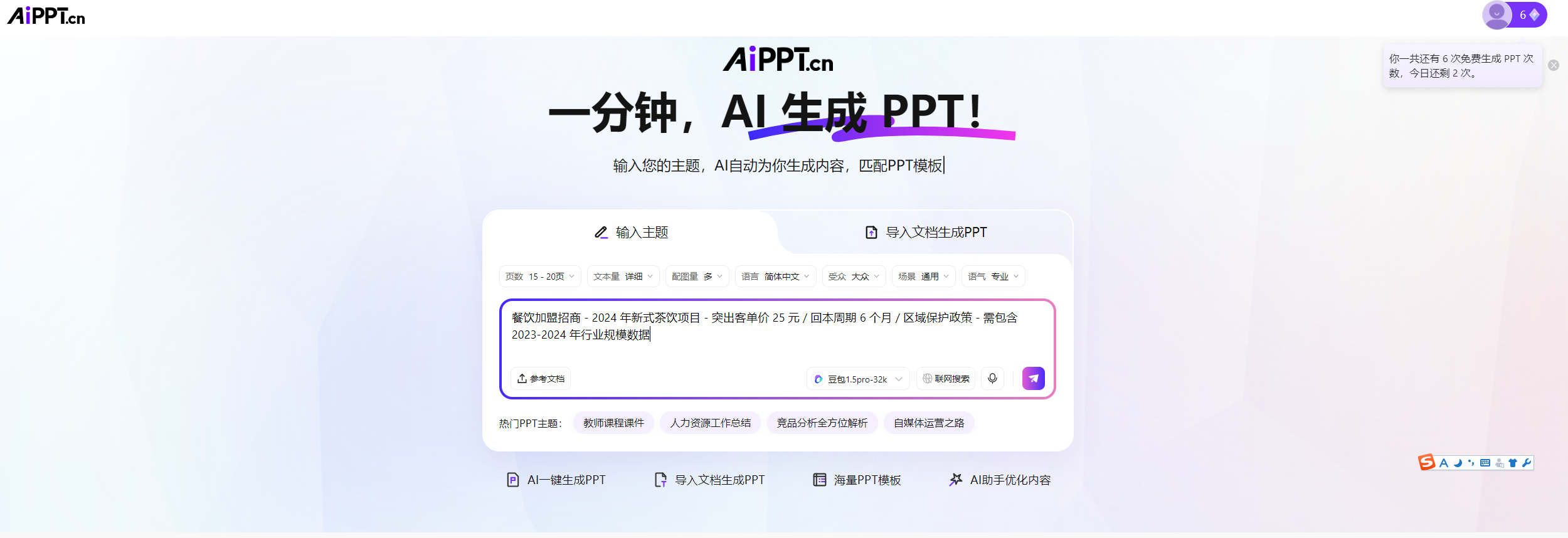 二、AIPPT 手把手实操攻略:从 0 到 1 做高颜值招商 PPT