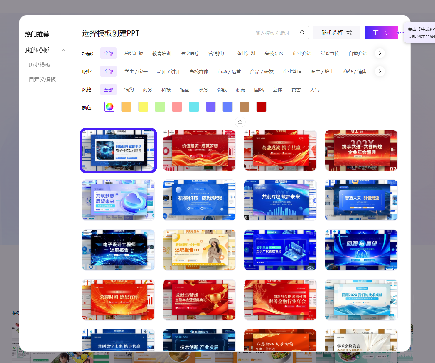 1. 风格选择器中,优先选「商务极简」或「创意视觉」(招商 PPT 首选专业感 + 设计感)