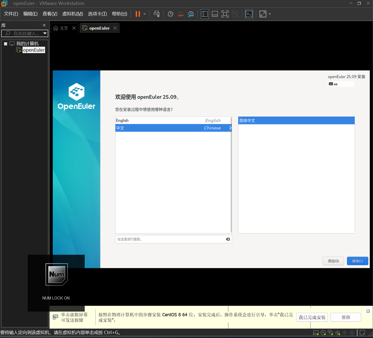 虚拟机已经配置完成,接下来就是配置openEuler操作系统