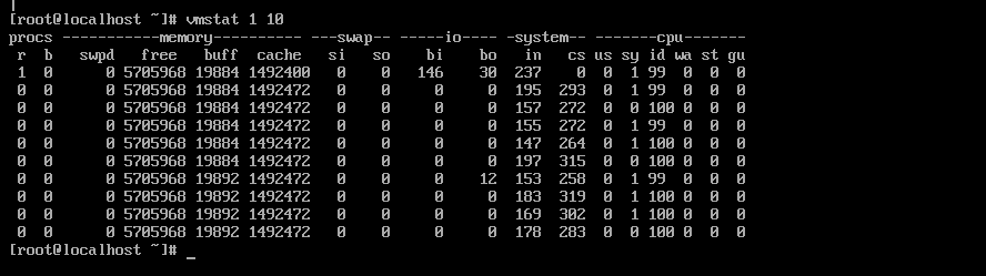 in(中断数)、cs(上下文切换)数值平缓 → 系统中断和进程切换负载极轻。