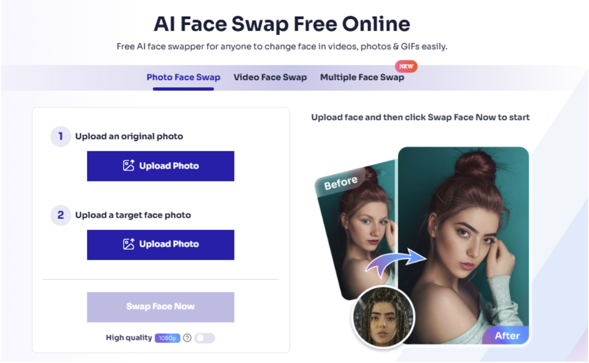 不用复杂操作,新手也能秒会。现在很多工具都提供免费换脸服务,其中 Vidqu AI 换脸工具尤其适合营销人 —— 功能全、操作简,单张照片、视频、多人换脸都能搞定,具体步骤看这里: