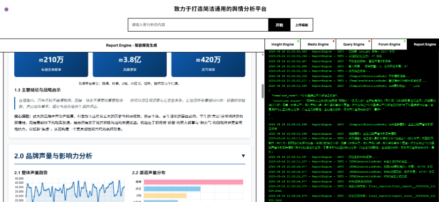 - 动态模板库:系统预置6种报告模板(社会热点、品牌监测、政策分析等),LLM自动选择最匹配的模板