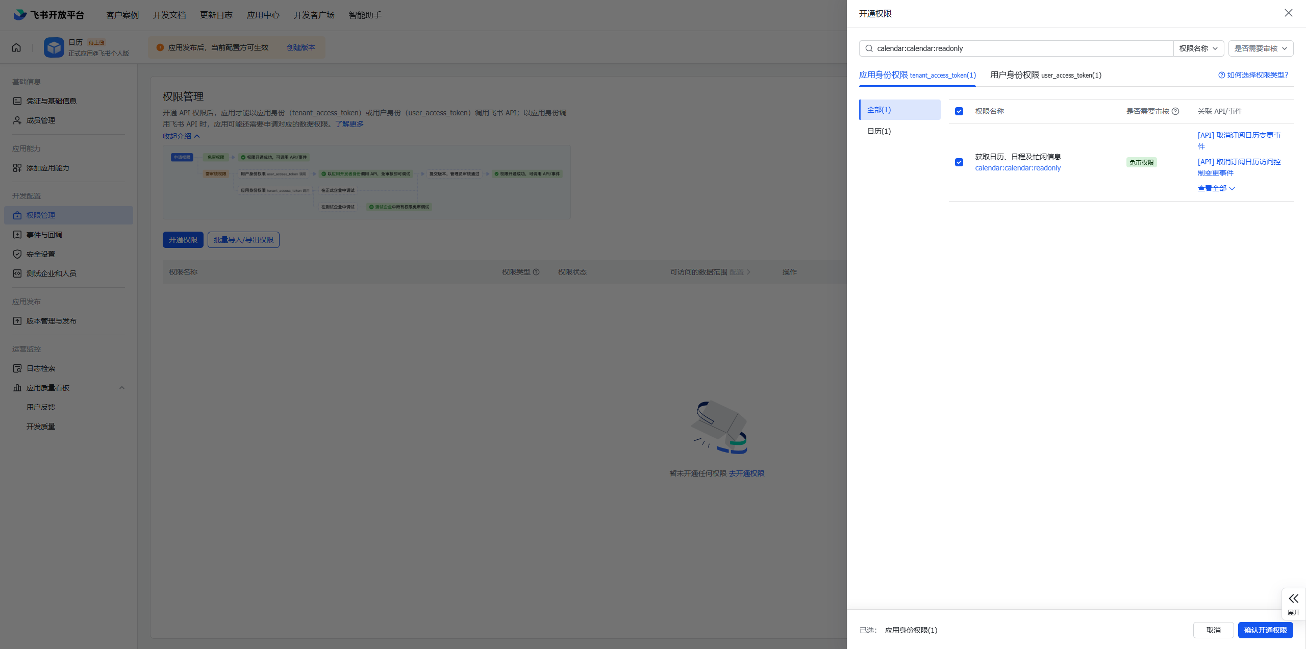 calendar:calendar.event:readonly (以应用身份读取日历)