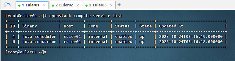 本文以 openEuler 25.09 集群为实战环境,详细讲解 Nova 计算服务的部署流程,包括控制节点和计算节点的软件安装、数据库与消息队列配置、服务注册与端点创建、Cell 架构初始化、节点发现以及服务验证等完整步骤。通过本文,可以快速掌握 Nova 服务在 openEuler 集群中的部署与调试方法,为构建稳定的私有云计算环境打下坚实基础。