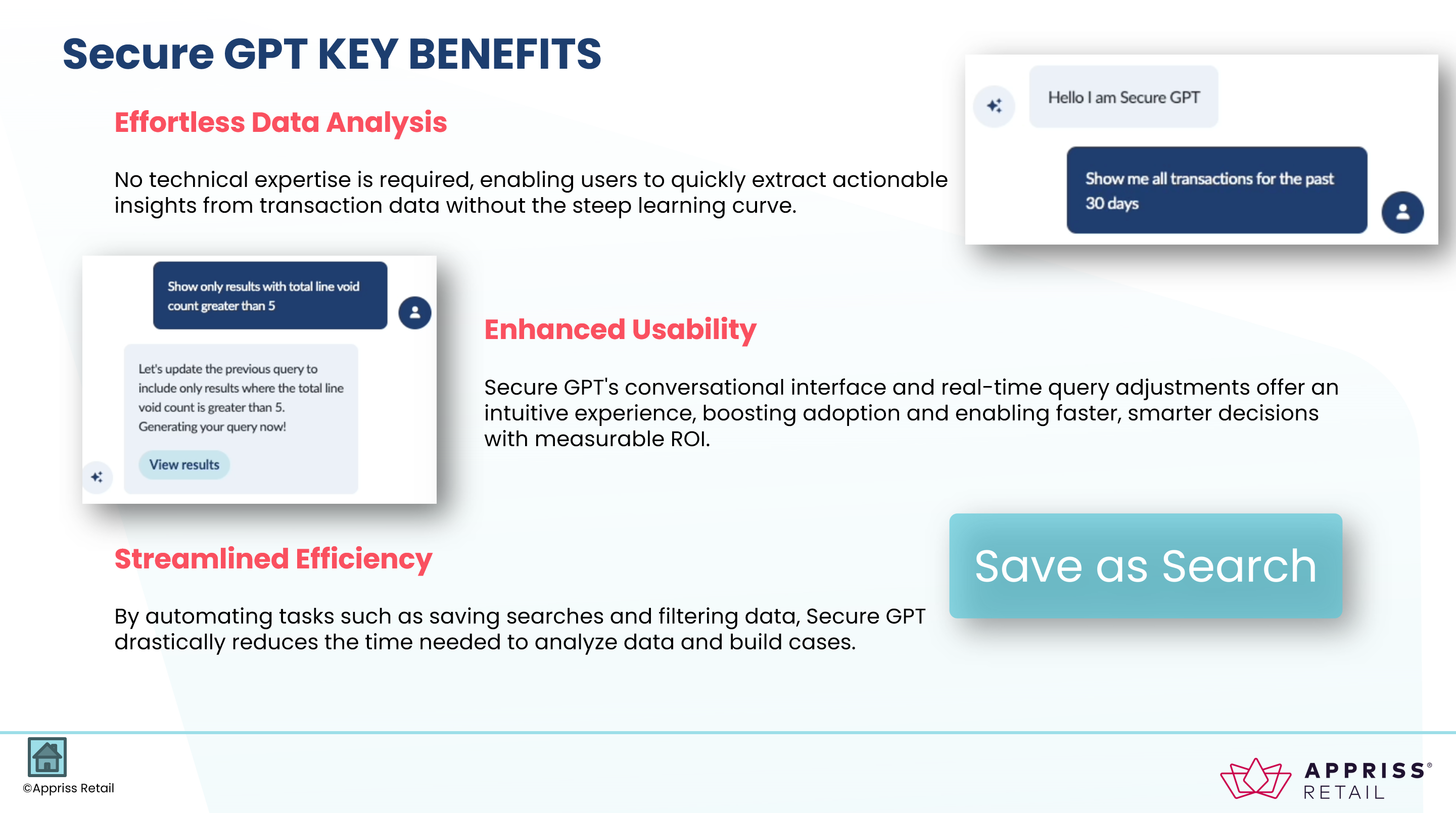生成式 AI 防损工具(比如 Appriss Retail 的 Secure GPT 功能)刚好踩中了这个需求:它能提升分析的速度和深度,让防损分析师、调查员更快拿出扎实的核查材料,直接影响门店利润,带来实打实的投资回报。
