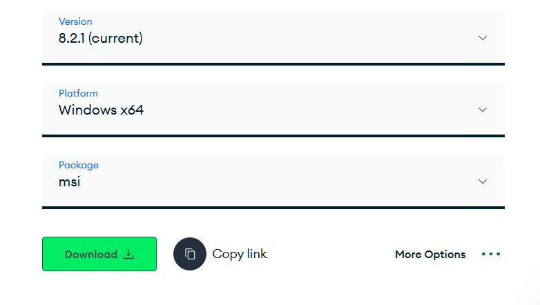 - Version:选择最新稳定版本(如8.0.x)