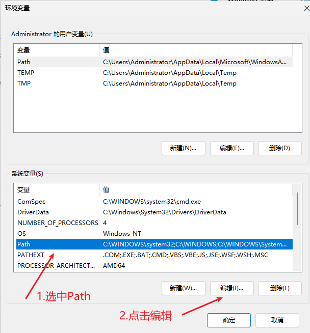 在系统变量中找到"Path",点击"编辑"