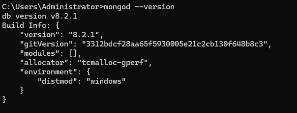 打开命令提示符(以管理员身份运行),输入以下命令验证MongoDB是否安装成功: