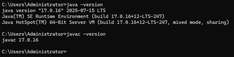 打开一个新的命令提示符,验证Java安装