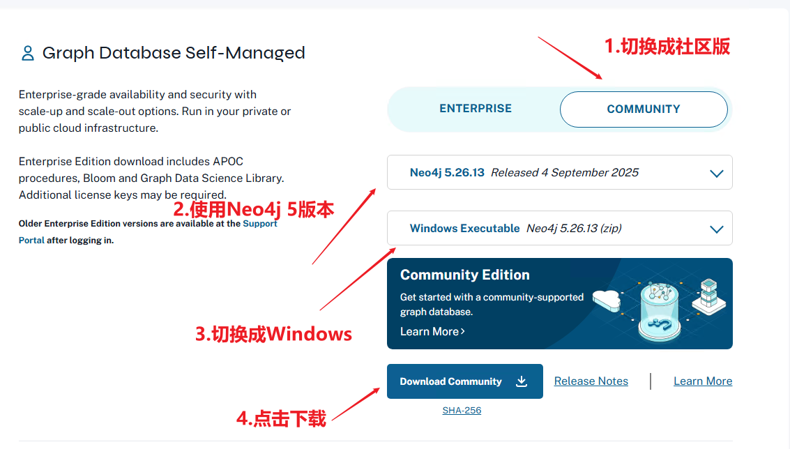 进入后往下滑进行下载。本教程下载的是Neo4j 5+版本,所以JDK版本需要是17