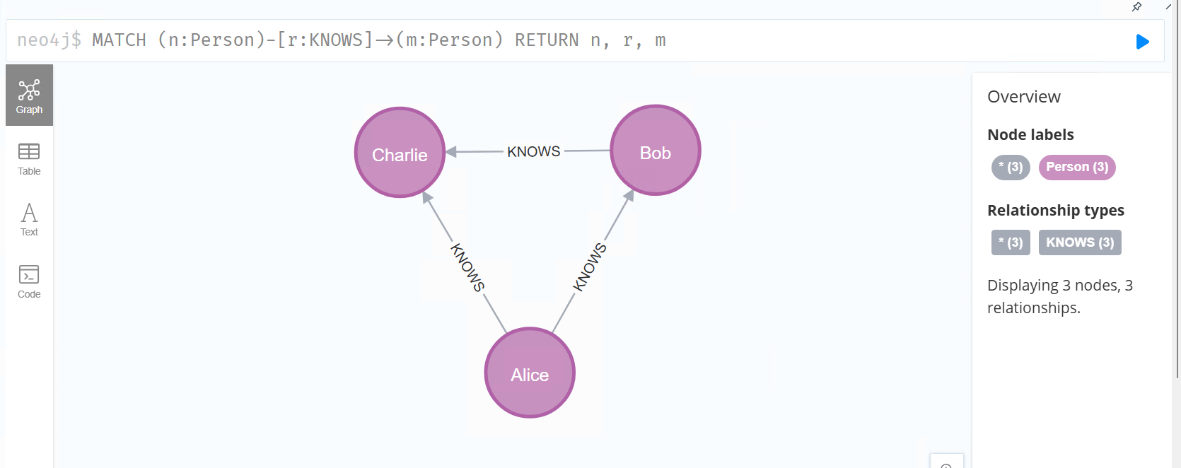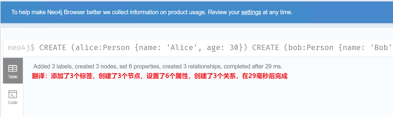 在Neo4j浏览器的查询框中输入以下Cypher语句: