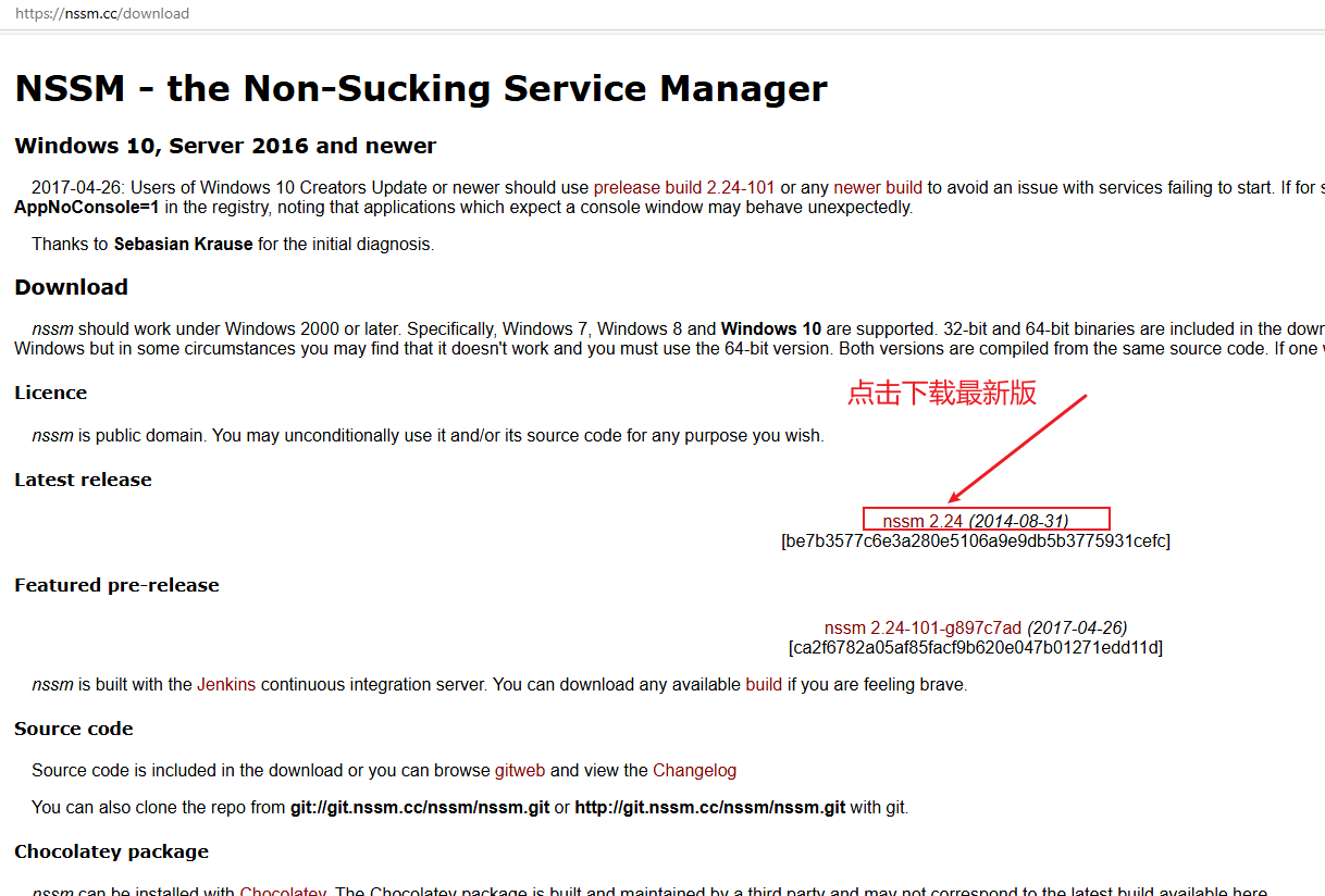 - 下载NSSM(Non-Sucking Service Manager):NSSM官网