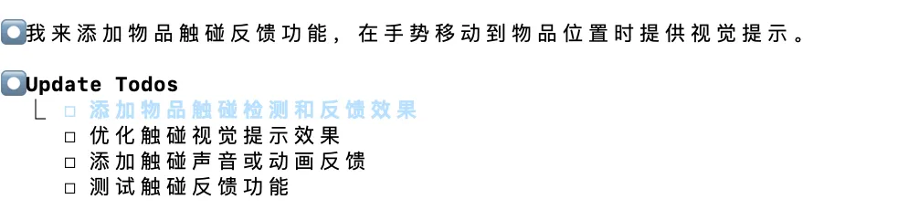 在手势移动到物品的位置有一个反馈,提醒用户这个物品被触碰了,等待抓取。
