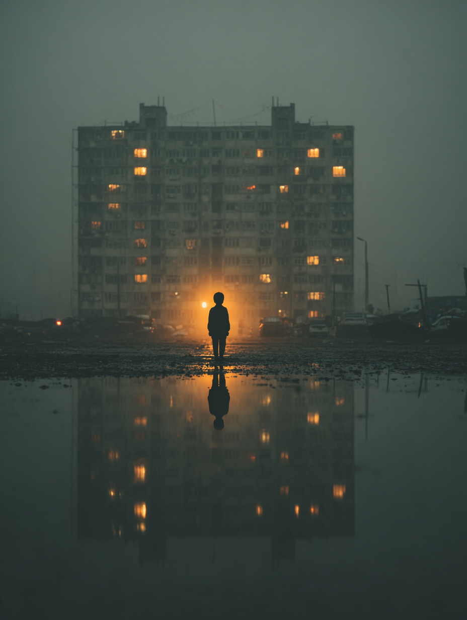 技术层面,需调配低饱和度暖黄底色与冷调反光,用高颗粒感模拟老相机胶卷质感,降低画面锐度制造梦核的朦胧边界,再通过 “阈限空间” 指令清空场景中的活物,只留生活痕迹却无人气,让怀旧温情与未知恐惧交织。